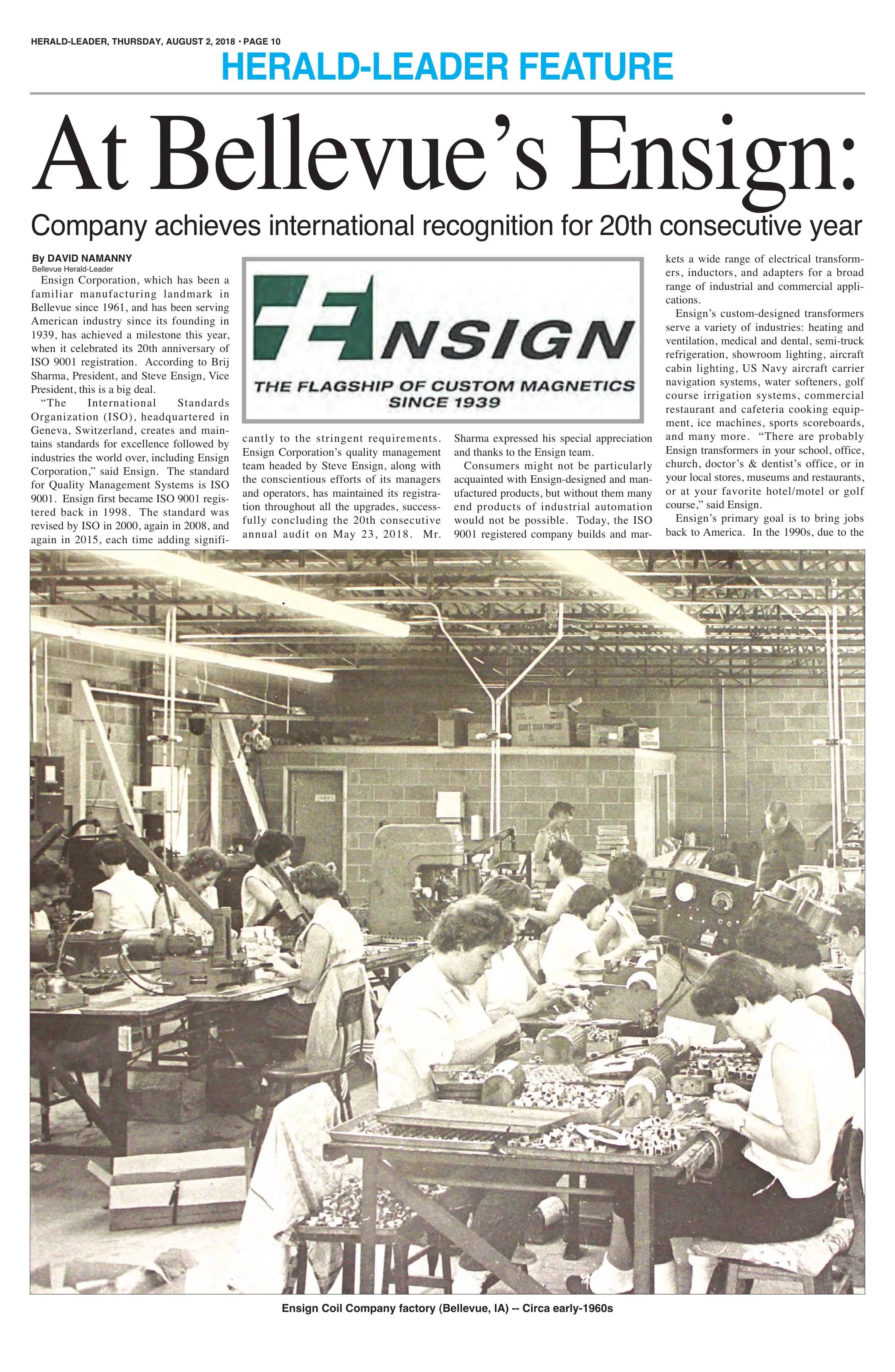 As the "Flagship of Custom magnetics", Ensign has come a long way since 1939. We have forged a reputation as a world-class manufacturer of electrical transformers, inductors and adapters for an ever-broadening array of industrial and commercial applications. Today, Ensign is a customer driven, ISO 9001:2015 registered organization that offers OEMs low-volume and high-volume production from domestic and offshore facilities. Both facilities meet all applicable safety agency requirements,and share a common commitment to continuous improvement.